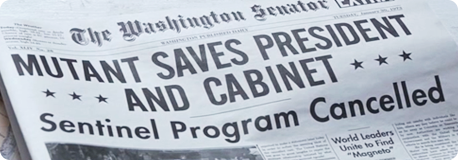 Esse era um ponto que quase me passava despercebido. Eu estava tão entretido assistindo novamente ao filme que nem me toquei dessa informação. Vejam bem: nos dois meios (HQ e filme), o gatilho para o Projeto Sentinela é a morte de uma pessoa muito importante do governo. Isso causa medo em toda a população estadunidense e canadense, fazendo com o que o projeto seja iniciado. Na minissérie, o assassinado é o senador Robert Kelly durante uma conferência sobre os mutantes. É uma boa motivação, principalmente porque Kelly é retratado como um agrado aos cidadãos norte-americanos. Já no filme, o gatilho é a morte do cientista Bolívar Trask, interpretado por Peter Dinklage. A morte dele acontece justamente numa conferência logo depois da Guerra do Vietnã.